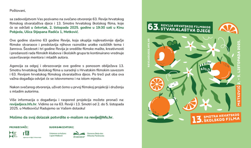 U našem Gradu se održava 63. Revija hrvatskog filmskog stvaralaštva djece i 13. Smotra hrvatskog školskog filma.