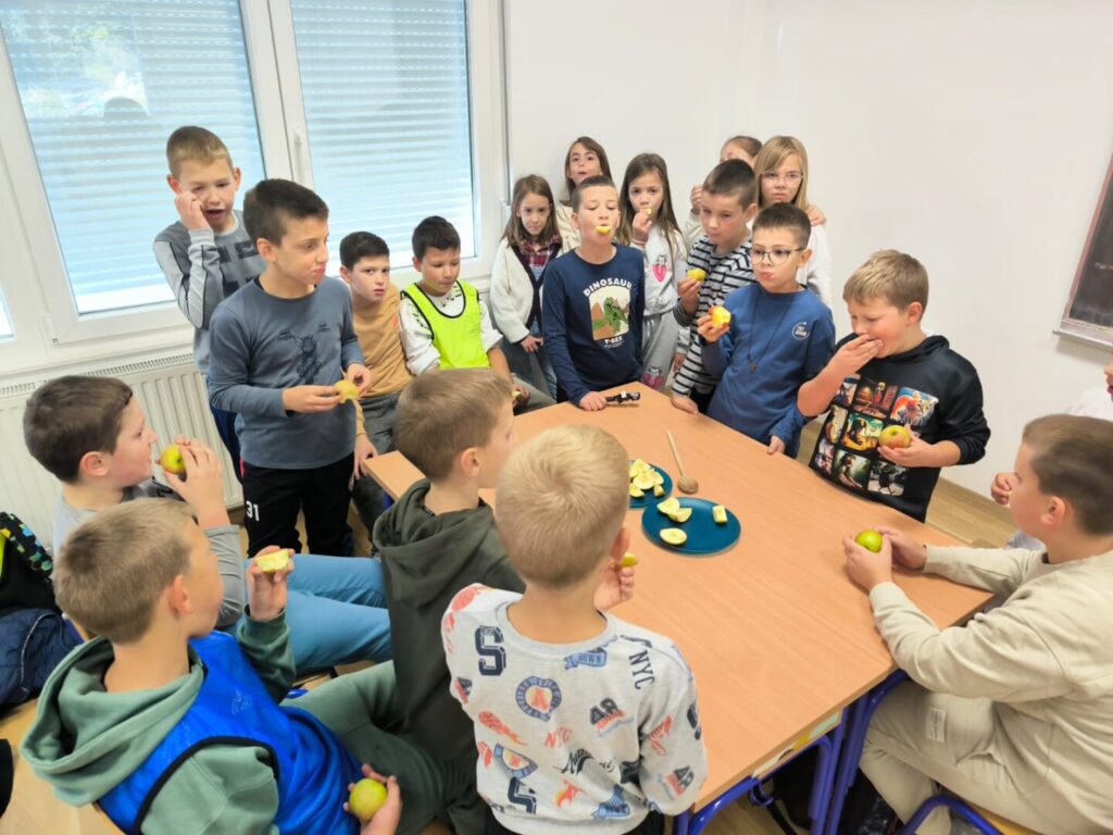 Ove školske godine taj dan obilježen je u Područnoj školi Prud u obliku integriranog radnog dana. Djeca su bila uključena u razne aktivnosti s ciljem upoznavanja koliko je jabuka zdrava i važna namirnica. Pjevali su pjesme, pisali i objašnjavali izreke o jabukama, izrađivali likovne radove u različitim likovnim tehnikama. Natjecali su se u prenošenju jabuke na kuhači, nošenju jabuke na glavi i u paru. Na kraju dana svi su se zasladili zdravim plodovima.