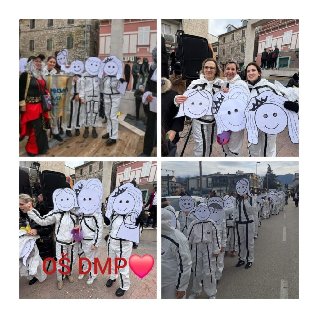 Sudjelovali smo u Velikoj maškarskoj povorci te tako nastavili biti čuvari i štovatelji bogate pokladne tradicije našega grada. Preko dvije stotine naših stickmena – učenika i učiteljica gradskim je ulicama ponosno nosilo školski stijeg. Zajedno s drugim gradskim školama, vrtićama, maškaranim skupinama te Gradskom glazbom pratili smo u dugačkoj, šarenoj i veseloj gusjenici Marka Krnjevala od Gradske dvorane do Trga kralja Tomislava gdje je gradskom Krnji pročitana optužnica za sve nedaće koje su naš grad zadesile u proteklom razdoblju. Zajedno s ostalim metkovskim školama nagrađeni smo za ustrajnost i kreativnost te čuvanje pokladnih običaja našega grada. Naši vidonjski stickmeni oduševili su svoje mještane veselom šetnjom seoskim ulicama.