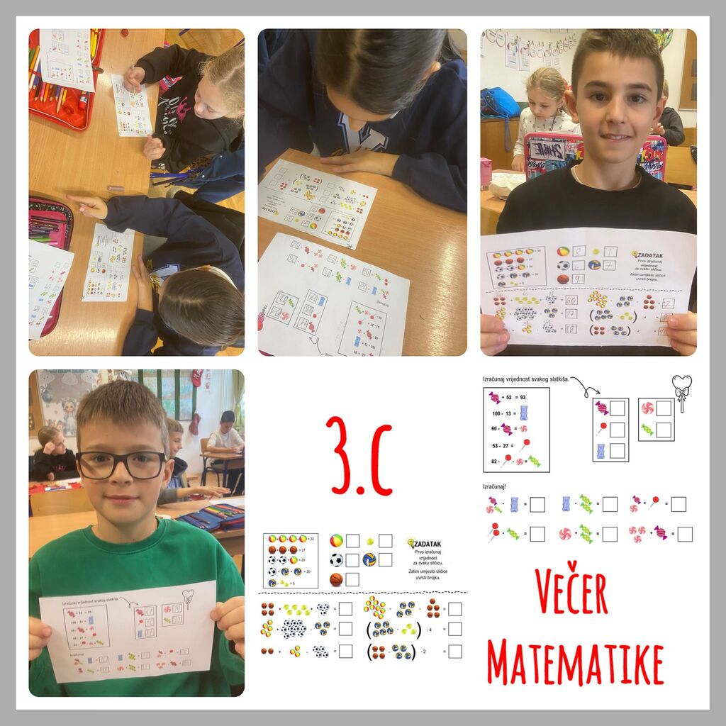 Deseti put za redom u našoj školi održala se Večer matematike. Taj važni matematički dan bio je u četvrtak, 4. prosinca 2025. Projekt Večer matematike organizira Hrvatsko matematičko društvo uz potporu Ministarstva znanosti, obrazovanja i sporta, a predstavlja skup zabavnih radionica, logičkih zadataka, interaktivnih igara i timskih aktivnosti koje populariziraju matematičko razmišljanje i potiču izgradnju pozitivnog stava prema matematici. Sudionici su imali priliku povezati se, surađivati i otkriti da matematika može biti i te kako zabavna. I ovaj put smo zajedno rješavali matematičke zadatke, igrali matematičke igre i opet ostvarili najvažniji cilj – zabavili se uz matematiku! Mladi matematičari su pokazali veliku kreativnost i upornost u rješavanju zadataka.