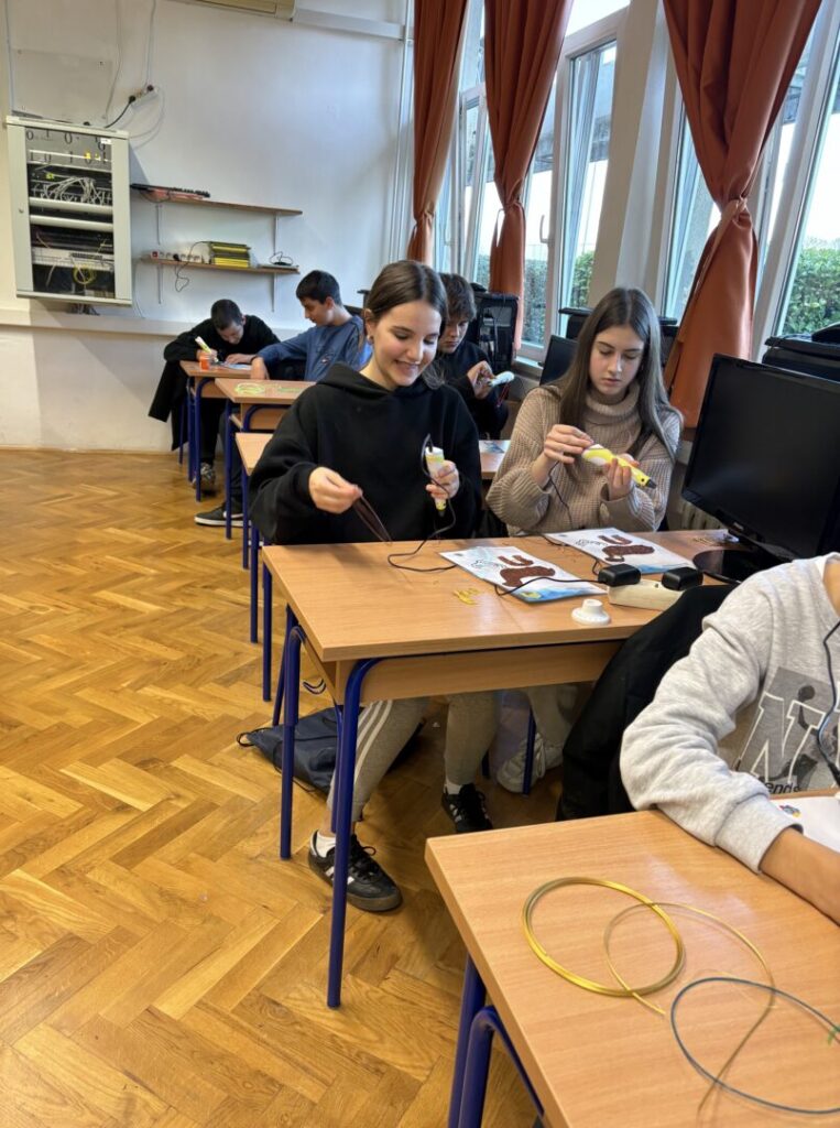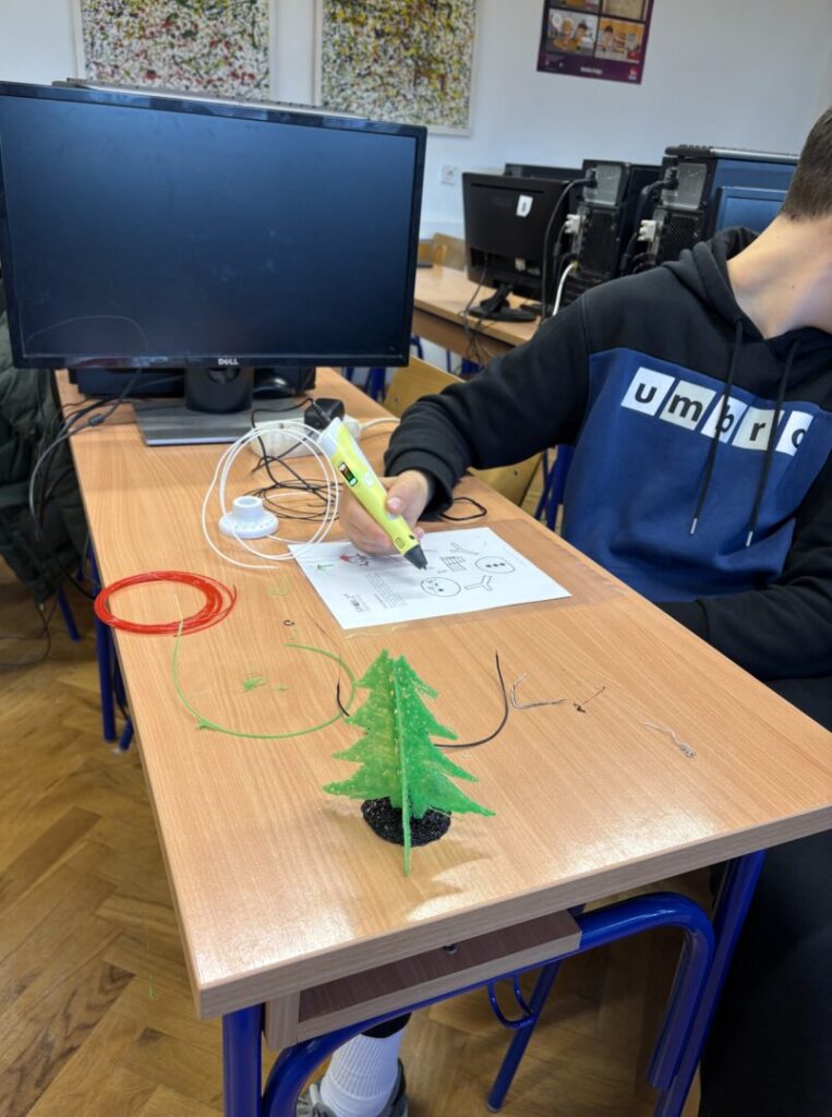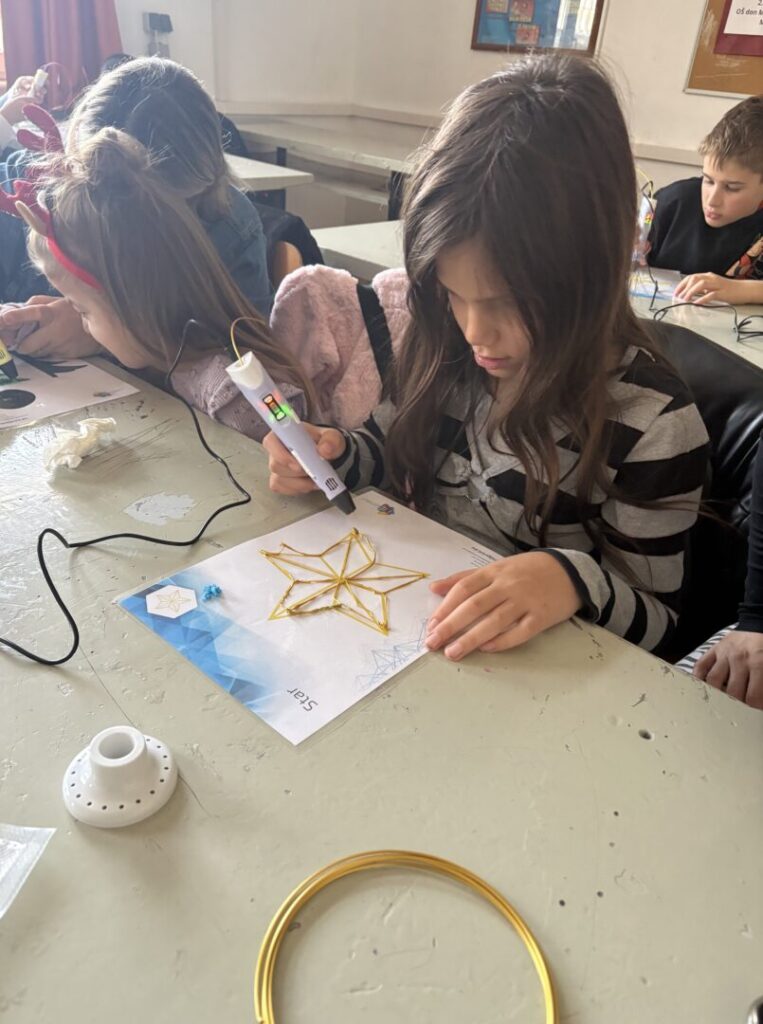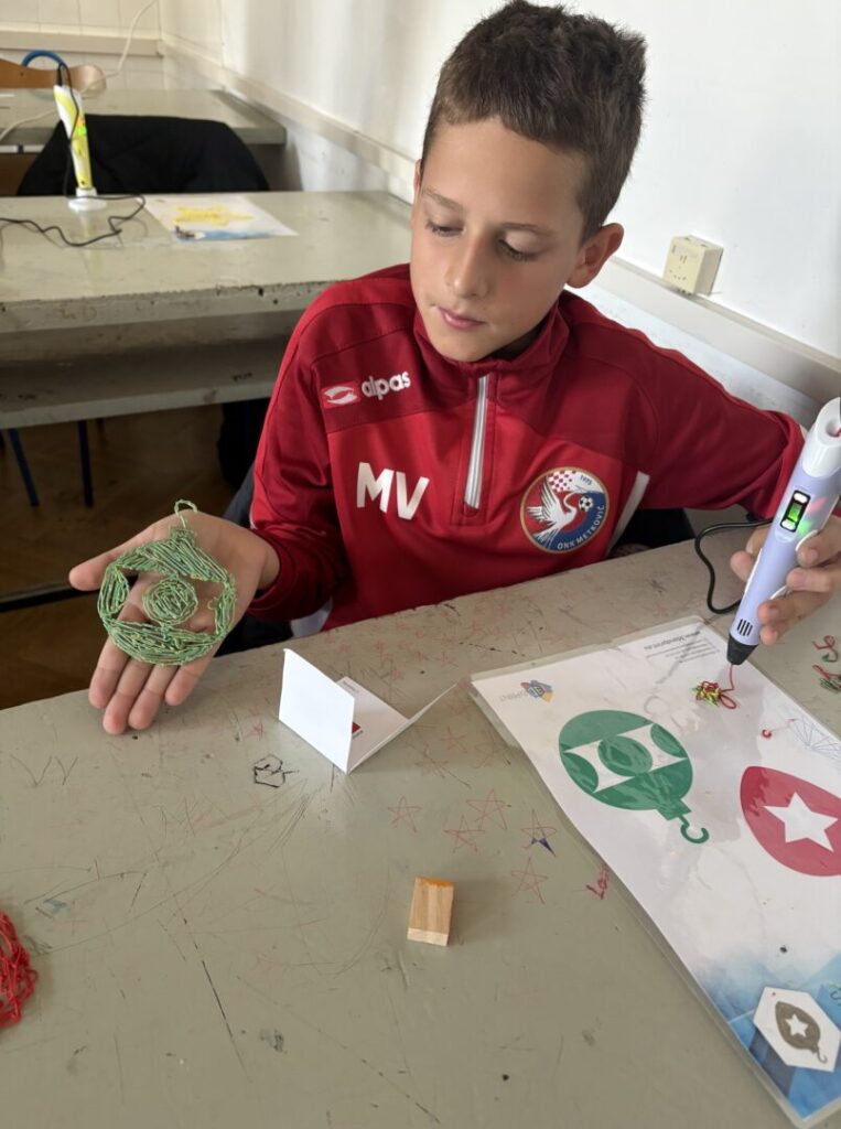 Tijekom prosinca, a povodom božićnih blagdana u našoj Školi održane su božićne STEM radionice – 3D olovke za učenike od 5. do 8. razreda i učenike Posebnog odjela. Polaznici radionice izrađivali su božićne ukrase koje su ponijeli kućama, a jako su brzo savladali tehniku “pisanja” s 3D olovkama.