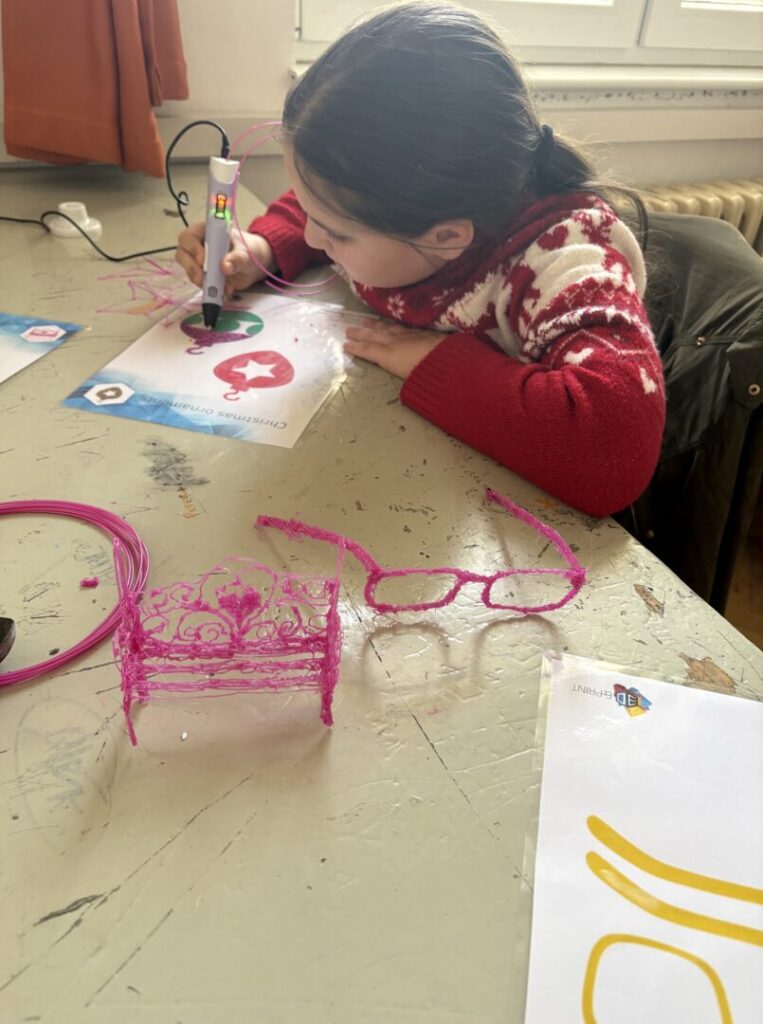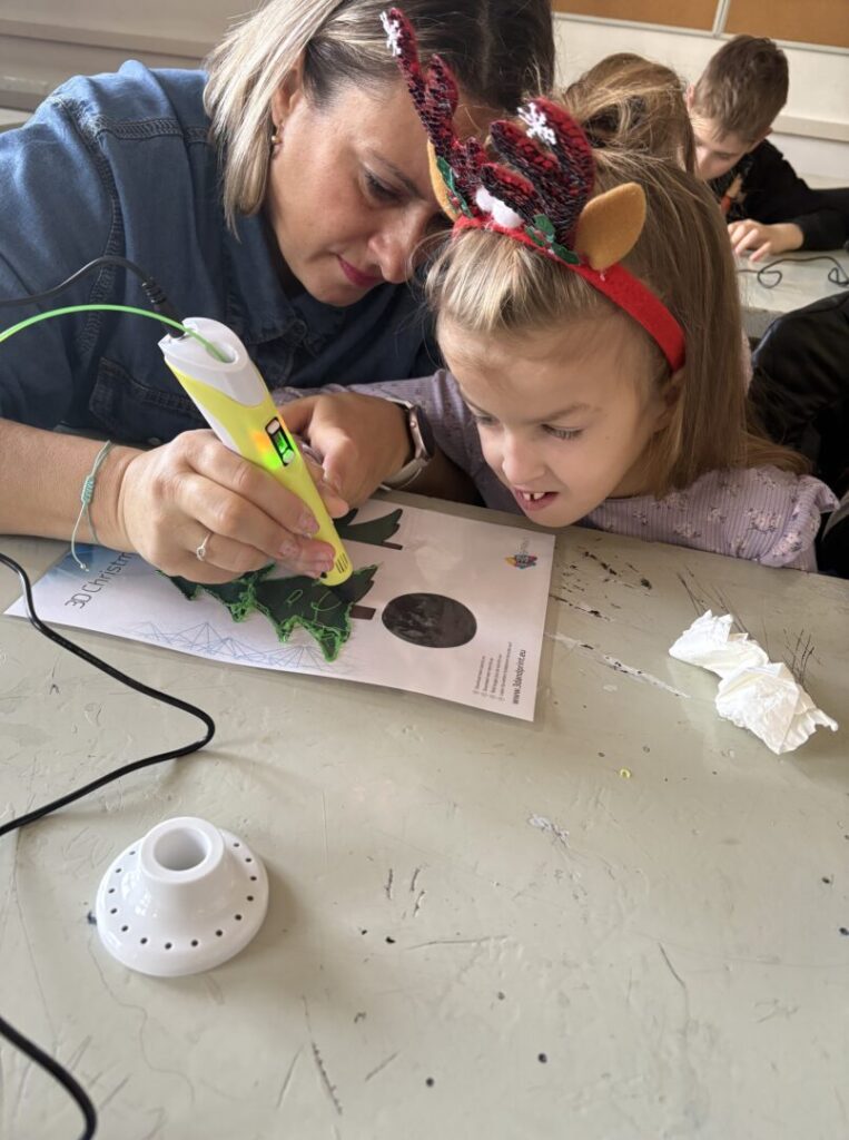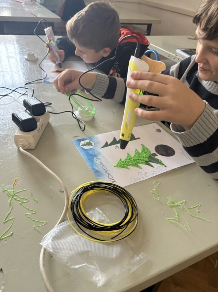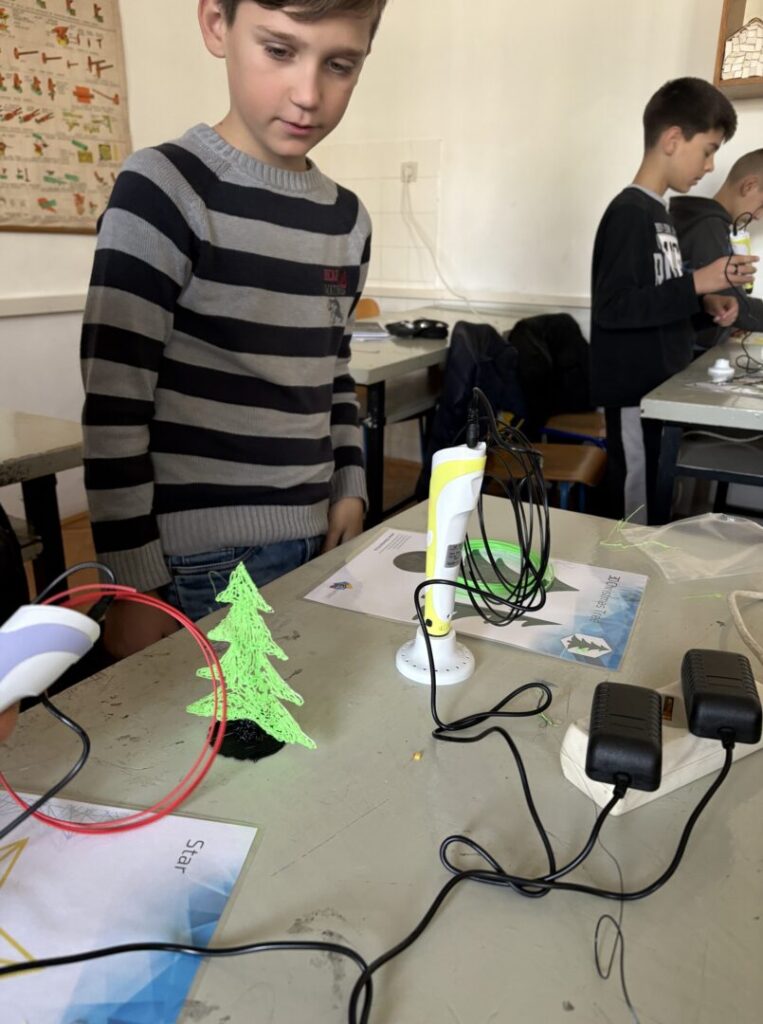 Tijekom prosinca, a povodom božićnih blagdana u našoj Školi održane su božićne STEM radionice – 3D olovke za učenike od 5. do 8. razreda i učenike Posebnog odjela. Polaznici radionice izrađivali su božićne ukrase koje su ponijeli kućama, a jako su brzo savladali tehniku “pisanja” s 3D olovkama.
